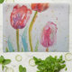 Floral Red Pink Tulip Watercolor Don't Worry Be Happy Tea Towel, with a fully customizable words. Designed from my original garden watercolours illustration.