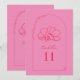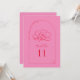 Illustration of flowers at top with line art botanical arch border. Background is pink.