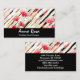 * Here is a Modern Pattern made up of Hand Painted Watercolor Floral Red Poppy Flower with Black and Gold Glitter Foil Striped Diagonal with overlaid Poppy Pattern all on a White Background for this lovely Business Card