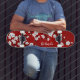 A white cherry blossom branch on a shimmering red background. Customise this skateboard with your daughter´s name.
