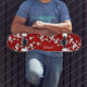 A white cherry blossom branch on a shimmering red background. Customise this skateboard with your daughter´s name.