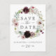 This floral romance save the date announcement postcard is perfect for an elegant wedding. The modern rustic boho design features romantic watercolor flowers in soft tones of burgundy, mauve, blush pink and cream white with green leaves.