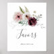 This floral romance guest book sign is perfect for an elegant wedding. The modern rustic boho design features romantic watercolor flowers in soft tones of burgundy, mauve, blush pink and cream white with green leaves.