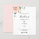 A chic white background. Decorated with a rose gold and blush pink floral, rose flower and green watercolored eucalyptus leaves, sprigs, greenery and a faux gold sprig. Personalise and add your names and details.