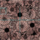 Floral Rose Gold Flowers and Leaves Drawing Black Fabric