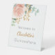 Floral rose gold greenery Quinceanera welcome Pedestal Sign