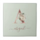 Floral Rose Gold Monogram Letter "A" sage green Tile