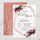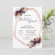This elegant geometric bridal shower invitation features rose gold copper, purple, champagne and mauve floral bouquets, a rose gold geometric element, with trendy hand lettered script, and faux rose gold foil on the back. Easy to customise with your own bridal shower information. This is perfect for the summer, spring, fall, or winter wedding. Back features copper rose gold faux foil stripes.