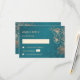 Rose gold floral line art cherry blossoms on a teal background. Matching wedding invitation available.