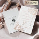 This wedding invitation is a stunning representation of spring’s natural beauty, seamlessly combining elegance with botanical charm. The real rose gold foil flowers add a delicate and luxurious touch, while the modern design keeps the overall feel fresh and sophisticated. The perfect balance of boho-chic and classic elegance gives it a timeless yet contemporary appeal, making it an ideal choice for couples who wish to celebrate their love in a way that’s both intimate and stylish. It’s an invitation that reflects the couple’s journey and sets the tone for a wedding filled with natural beauty, unforgettable moments, and heartfelt connections.