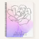 * This is a seriously chic feminine girly and delicate flower spiral notebook. The flower is an outline and looks very much like a rose and/or a peony. The abstract artsy background is the softest most gentle watercolor stains of lavender as well as pink*