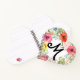 Floral Rose Poppy and Daisy Pink, Coral and Yellow Wreath Heart Shaped Personal Note Book with Monogram and Thank You on Back