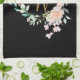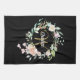 Floral Roses Script Monogram Gold Black Tea Towel