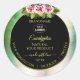 Make a lasting impression with this elegant and modern product label design featuring pretty roses and rose leaves on a frame with shimmering teal marble pattern. Matching a fine gold frame on a black background.
