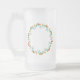 Floral round frame with yellow and red rose flower frosted glass beer mug