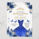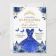 Floral Royal Blue Bilingual Spanish Quinceanera Invitation