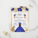 Floral Royal Blue Gold Charra Princess Quinceanera Invitation Postcard