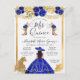 Floral Royal Blue Princess Gown Dress Gold Glitter Sparkle Charra Princess Cowboy Boots Horse 15th Birthday Quinceanera Invitation
