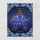 Floral Royal Blue Navy Blue Princess Gown Dress Gold Glitter Sparkle 15th Birthday Quinceanera Invitation
