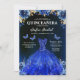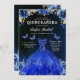 Floral Royal Blue QR Code Princess Quinceanera Invitation