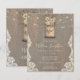 Floral Rustic String Light Bridal Shower Invitation. Embrace a boho chic aesthetic for your bridal shower with this enchanting mason jar invitation. The farmhouse country design showcases a soft bouquet of wildflowers nestled within a rustic mason jar, illuminated by twinkling fairy lights and subtle gold speckles that add a magical glittering glow. Intricate lace detailing frames the invitation, enhancing its vintage charm and country feel. This invitation is ideal for creating a relaxed yet elegant atmosphere, making it a perfect announcement for a memorable bridal shower event. Let this bridal shower invitation be the first glimpse of your beautiful celebration while keeping you budget affordable.