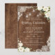 Floral Rustic Wood Lace String Lights Mason Jar Invitation