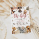 Join us for a charming boho baby girl shower with a safari theme! Our adorable invitation features playful baby animals including a monkey, giraffe, ostrich, lion, elephant, and tiger, all set against a beautiful backdrop of pampas and palm leaves. Delicate script and intricate details make this design truly one-of-a-kind.