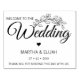 This floral "Wedding" custom rubber stamp for bags features couple names, wedding date and a thank you message.