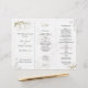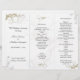 Gold scrollwork, leafy swirls, wedding program templates. Tri-fold ceremony program with grey and gold graphic floral design all over the background. **Reverse has no images or printing.