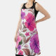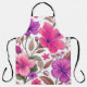The picture shows a lively mosaic of lush hibiscus flowers in strong pink, delicate lilac and deep purple, harmoniously spread over a white background. The flowers are joined by filigree leaves and delicate green stems, which exude natural elegance. It conveys a sense of joy, warmth and exotic beauty, as if you were immersing yourself in a tropical garden full of colors and life.