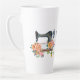 On this latte mug, an old fashioned sewing machine is surrounded by floral bouquets in tones of peach, orange, and yellow. The image is printed on two sides of the mug, with your custom text in dark grey between the images. A beautiful retro image that is especially appropriate for anyone who loves to sew!