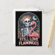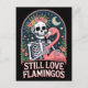 Whimsical and heartfelt, this floral skeleton postcard blends soft gothic charm with tropical surrealism. A moonlit sky frames a flower-crowned skeleton embracing a pink flamingo, radiating peaceful, eternal affection. The imagery evokes themes of lasting love, transformation, and individuality—resonating with queer and LGBTQ+ communities who embrace symbolism and artful defiance during Halloween. This postcard adds personality to October mail, alternative pride events, spooky love notes, or creative altar spaces. Celebrate self-expression and soulful connection through this dreamy, night-garden-inspired Halloween aesthetic.