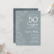 Simple navy grey surprise 50th birthday party invitation. Minimalist modern design in slate dusty blue featuring botanical accents and typography script font. Steel blue and white feminine floral invite card perfect for a stylish womens surprise bday celebration. Can be customised to any age.