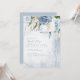 A handwritten, signature font combined with geometric frames, sparkly backgrounds and lush florals are used in this collection to set a warm and intimate tone for your wedding. The wedding Bridal Shower invitation shown here, with it's corner floral arrangement in trendy dusty blue and cream provides the details of your event, all while offering a sneak peek of your wedding aesthetic and style as a couple. Search ID889 to see all the products in this wedding set.