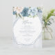 A handwritten, signature font combined with geometric frames, sparkly backgrounds and lush florals are used in this collection to set a warm and intimate tone for your wedding. The wedding menu shown here, with it's top border floral arrangement in dusty blue and cream, is an elegant background to add your own menu selections, names and wedding date. Search ID889 to see all the products in this wedding set.