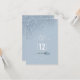 A handwritten, signature font combined with geometric frames, sparkly backgrounds and lush florals are used in this collection to set a warm and intimate tone for your wedding. The wedding table number card shown here, with it's bold number and single rose bud and background in light dusty blue, is simple but elegant and provides a template to add your own names and wedding date. Search ID889 to see all the products in this wedding set.