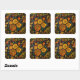 This vibrant image is a combination of a painting and digital art. It features glowing, golden-yellow and orange flowers with intricate, web-like textures. The flowers resemble roses and other blossoms, surrounded by a tangle of neon-like stems and leaves in shades of green, orange, and red. The background is dark, almost black, which enhances the luminous effect of the flowers and foliage. There are also tiny, twinkling star-like lights scattered throughout, adding a magical or cosmic feel.