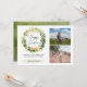 Easter greeting card with soft green floral wreath and the words "Happy Easter" Add your own message and two images to the front.