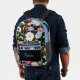 Beautiful backpack with a floral Spring design on black with blue edging and font - update the name prior to placing into your shopping cart.