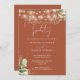 Floral String Lights Terracotta Engagement Party Invitation