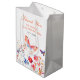 Pretty birthday medium gift bag with colourful flowers in pink, purple and orange, butterflies and foliage. Perfect for a spring or summer bridal shower. The words can be changed to suit your own details or requirements.