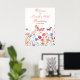 Pretty birthday welcome sign with colourful flowers in pink, purple and orange, butterflies and foliage. Perfect for a spring or summer bridal shower. The words can be changed to suit your own details or requirements.