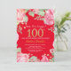 Floral Surprise 100th Birthday Invitation for Women. Watercolor Botanical Floral Flower. Gold Glitter. Pink Peonies Floral Flowers. Adult Birthday. Red Background. For further customisation, please click the "Customise it" button and use our design tool to modify this template.
