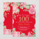 Floral Surprise 100th Birthday Gold Glitter Red Invitation