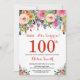Floral Surprise 100th Birthday Invitation Red