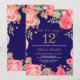 Red Floral Surprise 12th Birthday Invitation for Women. Watercolor Botanical Floral Flower. Gold Glitter. Pink Peonies Floral Flowers. Kids Girl Lady Birthday. Navy Blue Background. For further customisation, please click the "Customise it" button and use our design tool to modify this template.