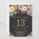 Floral Surprise 13th Birthday Invitation for Women. Watercolor Floral Flower. Black and Gold Glitter. Pink, Yellow, Orange, Purple Flower. Kids Birthday. For Girl Lady Teen Teenage. For further customisation, please click the "Customise it" button and use our design tool to modify this template.