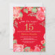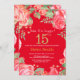 Floral Surprise 15th Birthday Gold Glitter and Red Invitation