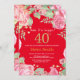 Floral Surprise 40th Birthday Gold Glitter and Red Invitation