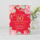 Floral Surprise 90th Birthday Gold Glitter and Red Invitation